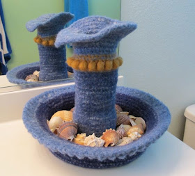 My kids have a nautical themed bath, so what could be a more natural addition than a felted fountain filled with shells? Every loo has one of these, right? Mainly, I just couldn't stuff in back into the closet or some random box. I think my subconscious may be in the lead at this point. I have a whole box of Hefty bags sitting on the floor of my studio with the plan to give away as much as I can. So far, I haven't opened it. It's an internal battle of wills and I hope my practical side wins.